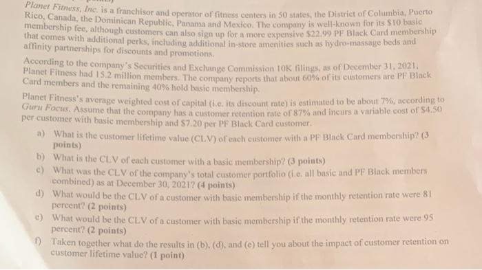 Solved Planet Fitness Inc Is A Franchisor And Operator Of Chegg Com